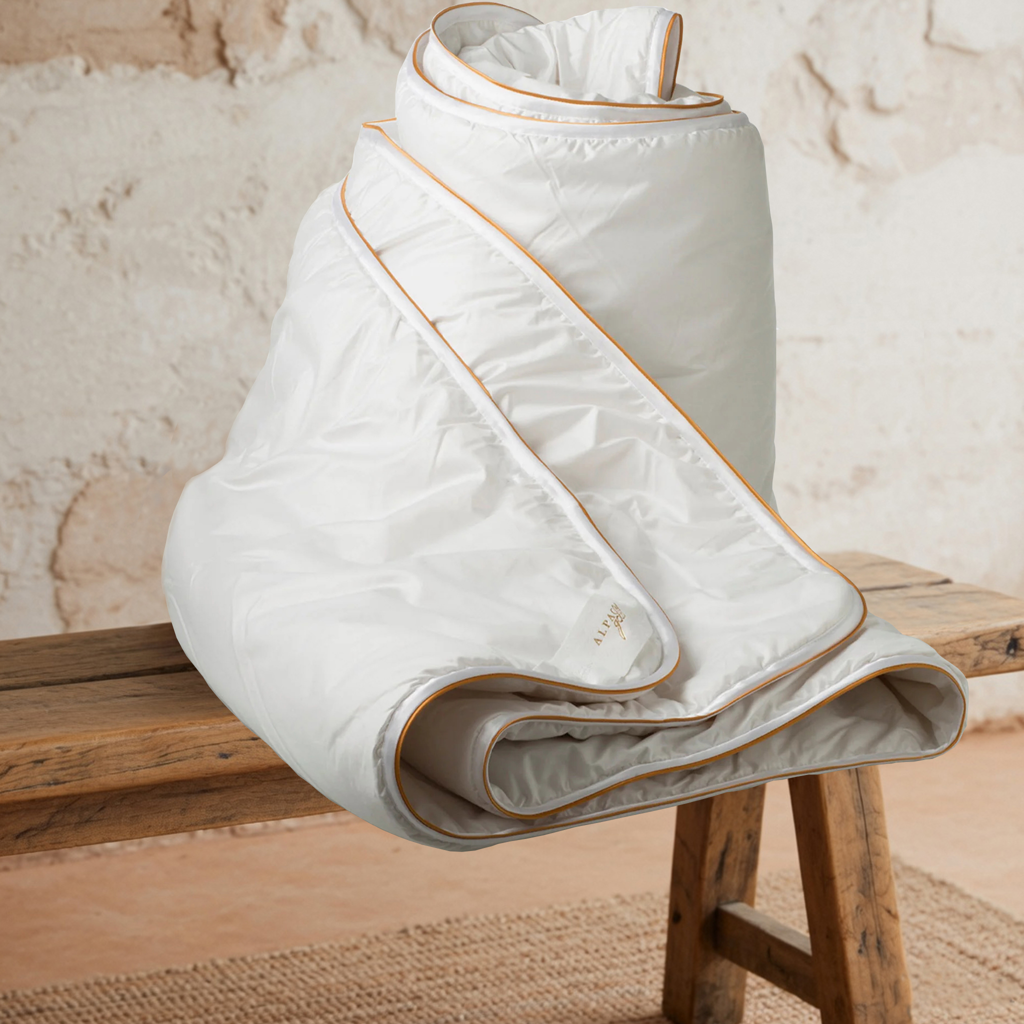 Inside, a carefully balanced blend of pure alpaca fleece and high-loft polyester fibre delivers the best of both worlds. Alpaca brings the soft, plush, naturally hypoallergenic feel the fibre is loved for. The high-loft fibre brings resilience — the structural integrity that stops a pillow from flattening, lumping or losing its support over time. Together they give you a pillow that feels luxurious from the first night and performs from the first night to the thousandth.