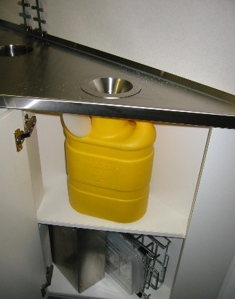 Professional hideaway style paper towel dispenser installed into the rear of wall mounted cabineted.