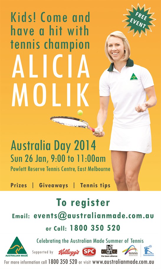 The Australian Made Campaign will be hosting a free event from 9.00am-11.00am at the East Melbourne Tennis Centre on Australia Day, open to kids of all ages, aimed at encouraging families to stay active and buy local.